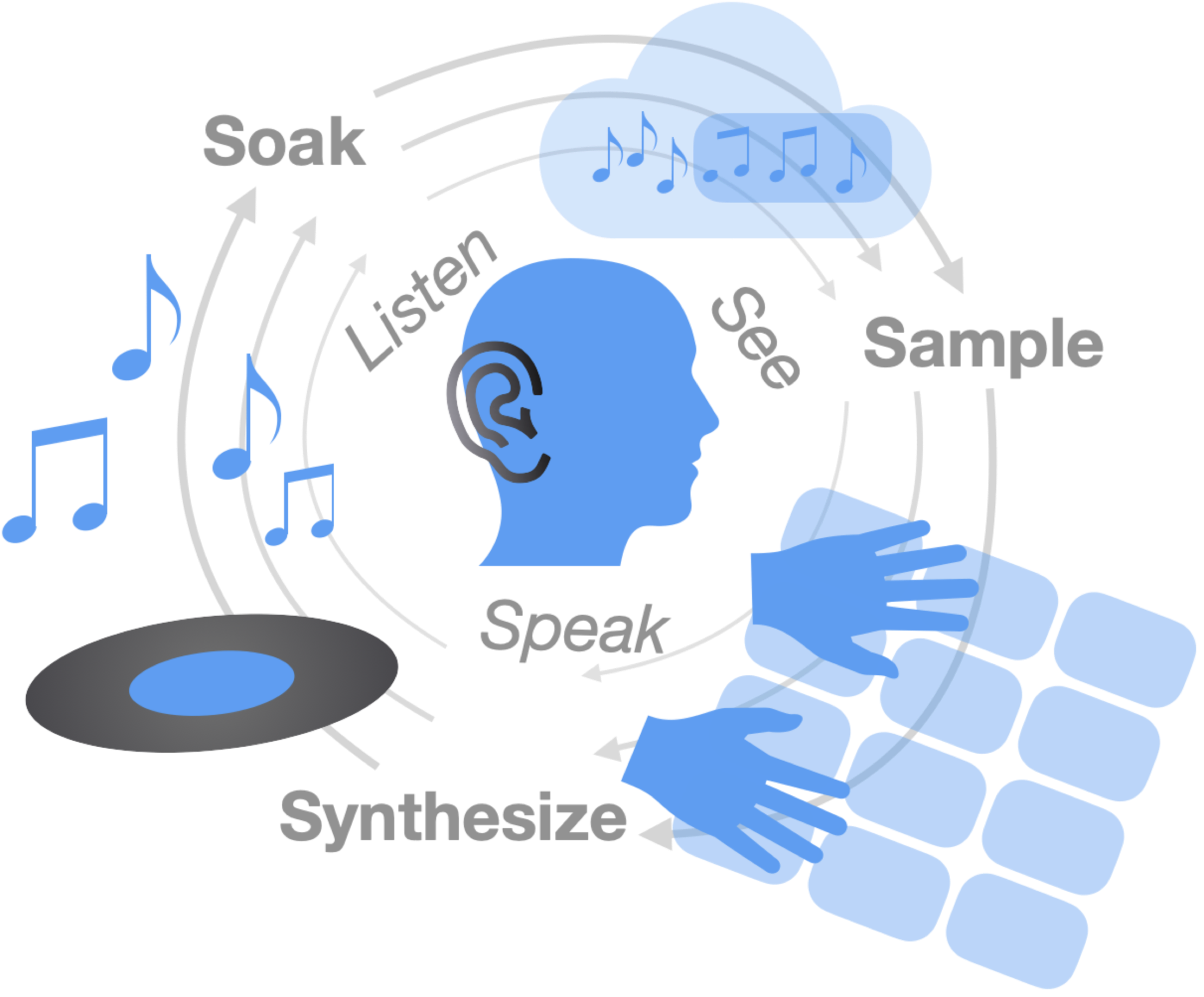 Rather than a line from soak → sample → synthesize, a sampler’s workflow forms a spiral, with the output from one stage being fed back into the next. We can define four stages to this spiral, with the fourth step being an optional recursion.